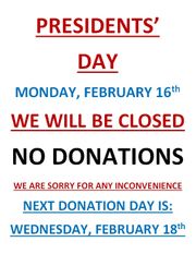 IF YOU NEED A DIFFERENT DAY OR TIME YOU MUST CALL AND MAKE AN APPOINTMENT SO WE WILL BE ABLE TO ACCEPT YOUR DONATIONS.